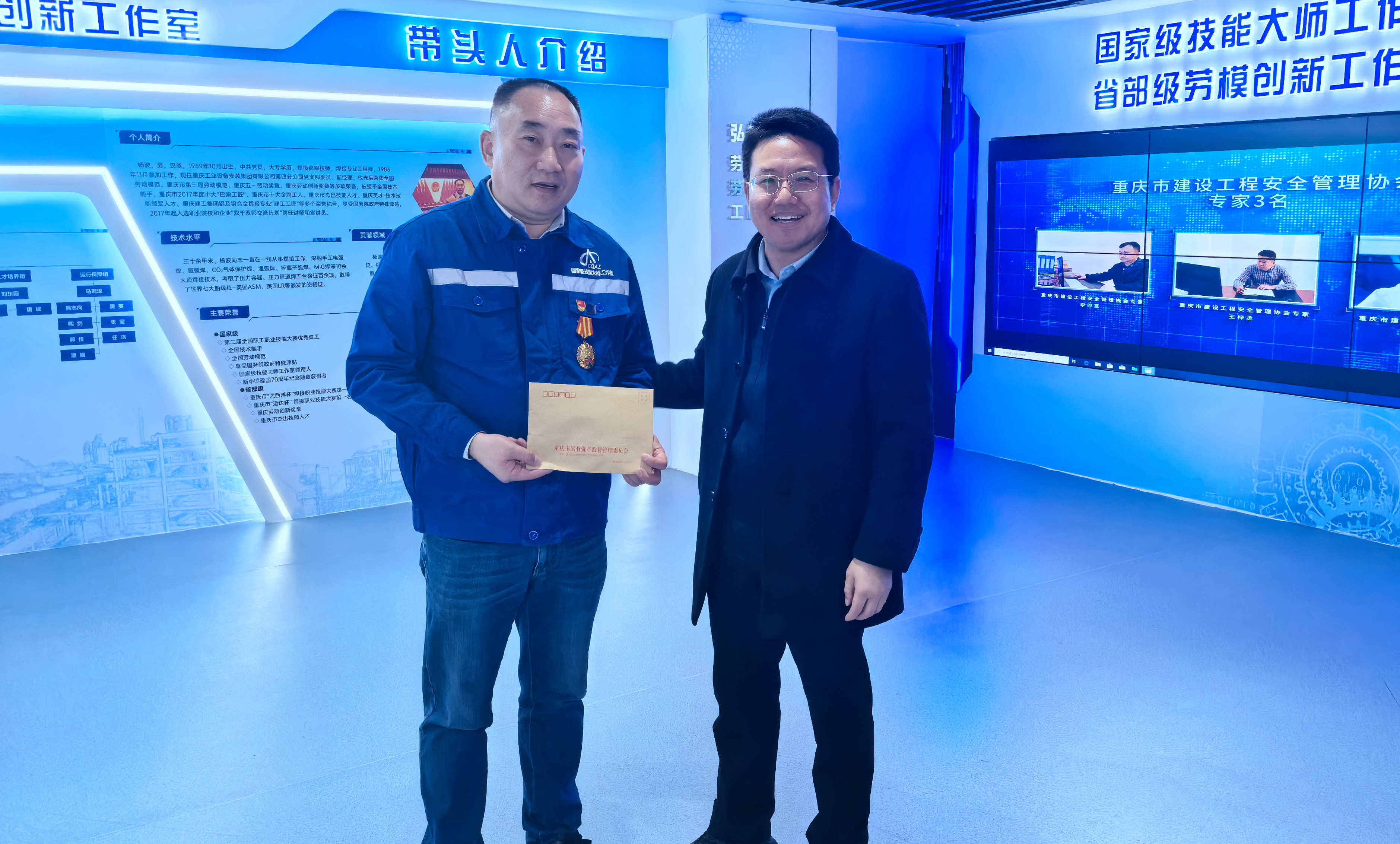 在重慶建工安裝集團國家級技能大師工作室,廖志高與全國勞模、大國工匠人才培育對象、國家級技能大師工作室領(lǐng)銜人楊波親切交流,感謝他為國家、社會、企業(yè)發(fā)展所付出的努力,鼓勵他充分發(fā)揮勞模工匠的示范帶動和價值引領(lǐng)作用,推動知識型、技能型、創(chuàng)新型勞動人才隊伍建設(shè)。他希望楊波利用好創(chuàng)新工作室平臺,激發(fā)創(chuàng)新潛能,因地制宜發(fā)展新質(zhì)生產(chǎn)力,提高工作室創(chuàng)新攻關(guān)能力和創(chuàng)新成果管理能力。楊波表示將持續(xù)發(fā)揮勞模工匠“傳幫帶”作用,努力提升技術(shù)創(chuàng)新創(chuàng)效能力,為企業(yè)改革發(fā)展貢獻(xiàn)力量。